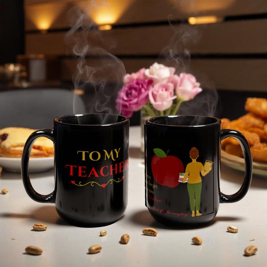 To My Teacher- "Thank You For Everything" - Black Ceramic Mug