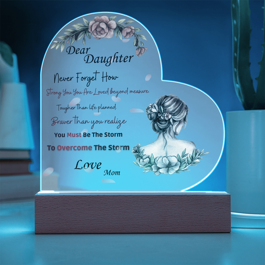Dear Daughter- "You MUST Be The Storm" - Acrylic Heart Plaque