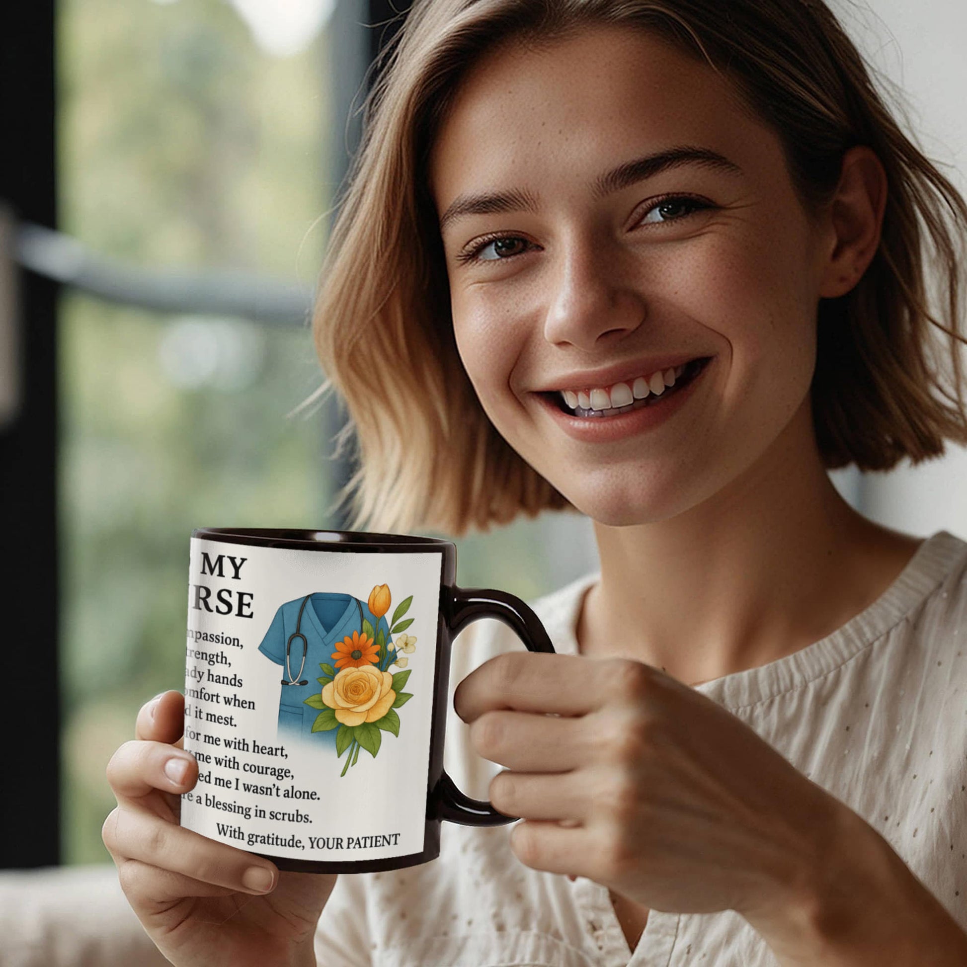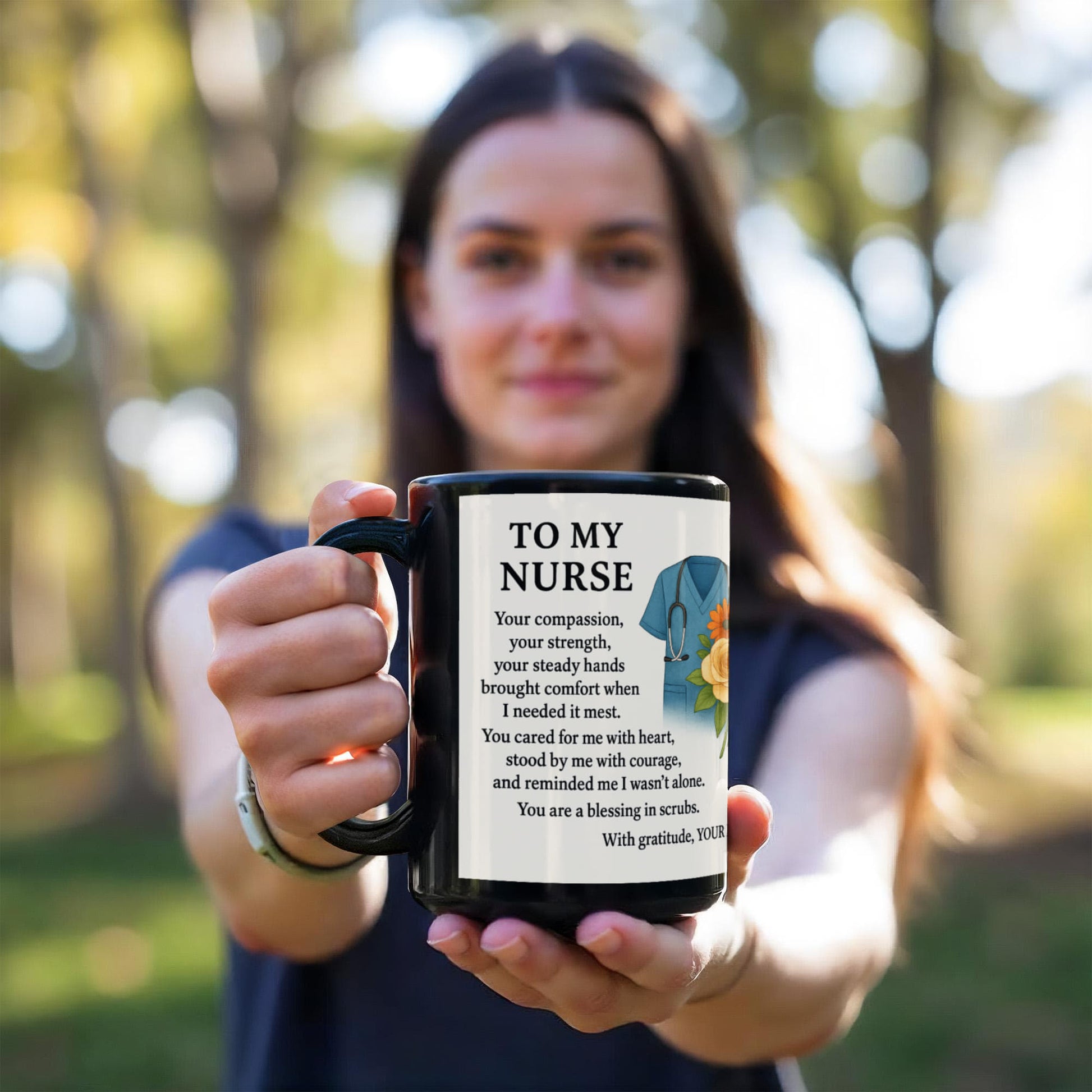 To My Nurse – With Gratitude Coffee Mug Honor the healthcare professionals in your life with this thoughtfully designed ceramic mug. Perfect for morning coffee, tea, or a quiet moment of appreciation, this mug combines meaningful sentiment with everyday functionality. The durable, dishwasher-safe construction ensures it withstands daily use, while the comfortable grip makes it ideal for busy shifts or relaxing at home. Whether given as a thank-you gift or a personal keepsake, this mug serves as a lasting reminder of the dedication and compassion nurses bring to their work. A heartfelt present that celebrates their service.