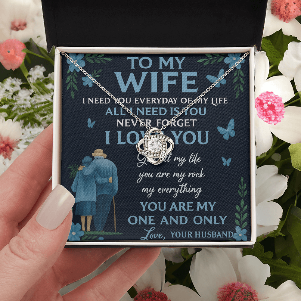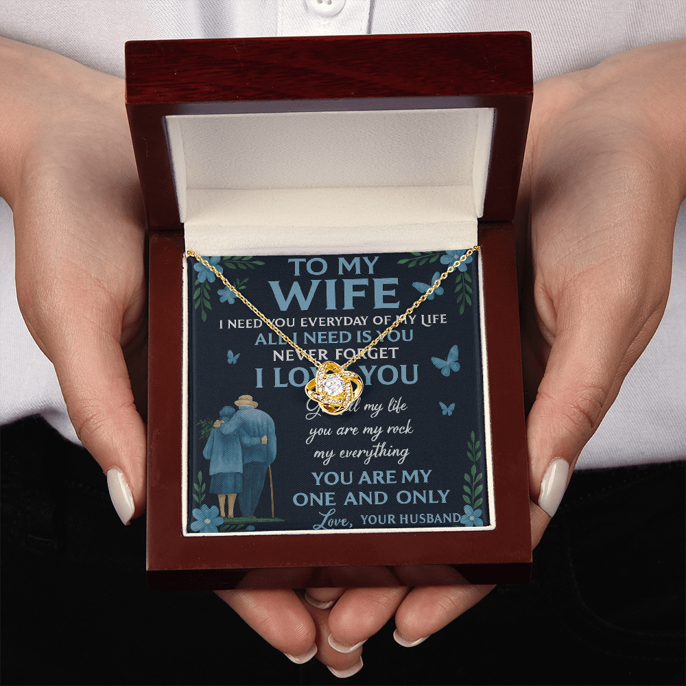 # To My Wife- All I Need Is - Beautiful Love Knot Necklace A timeless expression of devotion, this elegant love knot necklace captures the essence of an unbreakable bond. The interlocking design symbolizes two hearts eternally connected, making it a meaningful gift for the woman who means everything. Crafted with attention to detail, this piece combines classic sophistication with heartfelt sentiment, perfect for anniversaries, special occasions, or simply reminding your wife of your unwavering commitment. A wearable declaration of love that transcends fleeting trends.